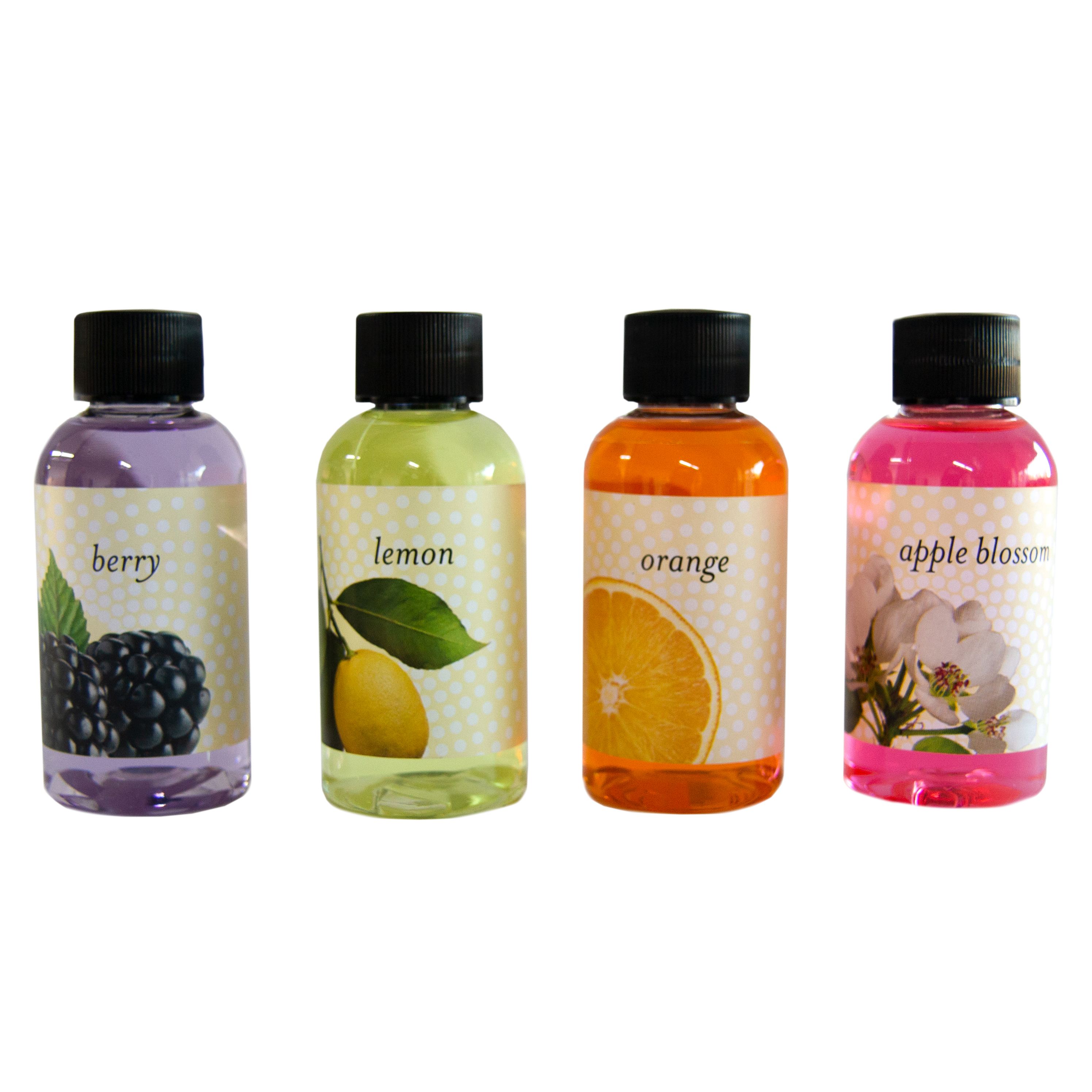 Flor de Maça, Amora, Eucalipto, Limão, Laranja, Pinho, Baunilha, Violeta.