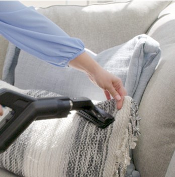 Coloque a almofada no saco Aerofresh, coloque a escova de sofás e estofos na extremidade do tubo, segure o saco bem apertado à volta do tubo. Ligue a Rainbow e o poder de sucção da Rainbow vai extrair todos a a sujidade da sua almofada, deixando-a fofa e limpa.